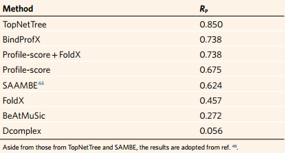 表1. 在AB-Bind S645数据集上多种方法的Rp指标的对比