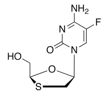 当然,这种修饰不仅仅发生在五碳糖上,有时候碱基也是可以修饰的。比如恩曲它滨(Emtricitabine),它是一种胞嘧啶核苷类似物: