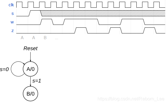 我之前用的方案是在B之后的三个周期内,列举w的值,取值情况有8种,然后添加更多的状态去解决这个问题,不得不说状态转移图看起来复杂很多,也绝对不是推荐的方案。