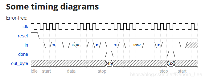 Now that you have a finite state machine that can identify when bytes are correctly received in a serial bitstream, add a datapath that will output the correctly-received data byte. out_byte needs to be valid when done is 1, and is don't-care otherwise.