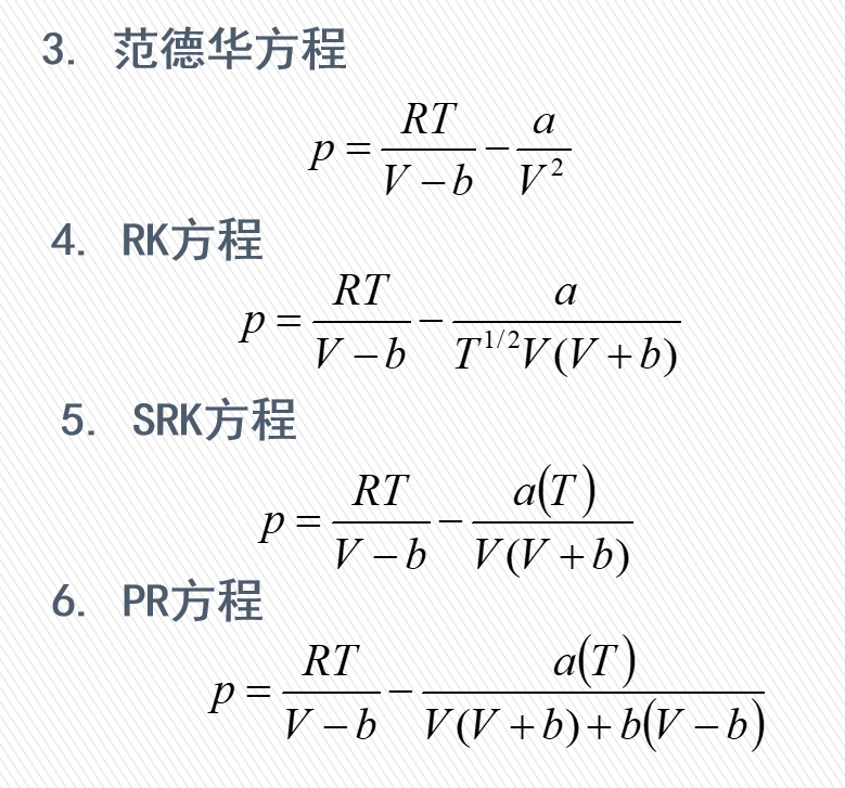 纯经验; 形式:立方型包括VDW、RK、SRK、PR;
