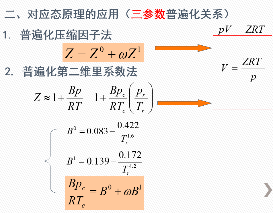 3、由Pitzer提出的由偏心因子ω计算普遍化的第二维里系数的关系式为 Z=Z0+wZ1 。