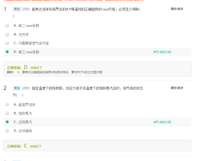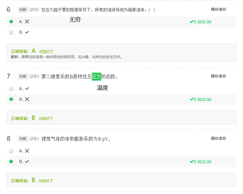 8、第二、第三维里系数分别表示的理论含义是 正确答案:表示二个、三个分子间碰撞或相互作用导致的非理想行为 。
