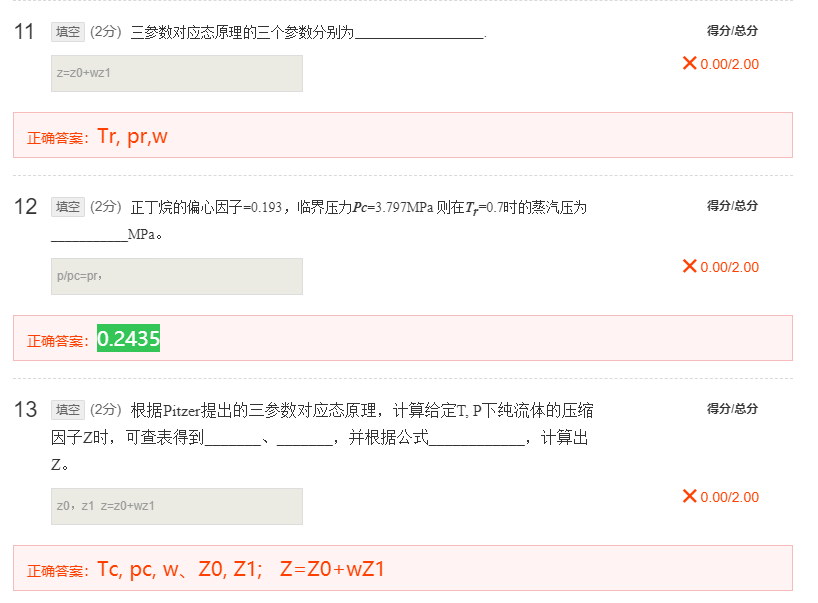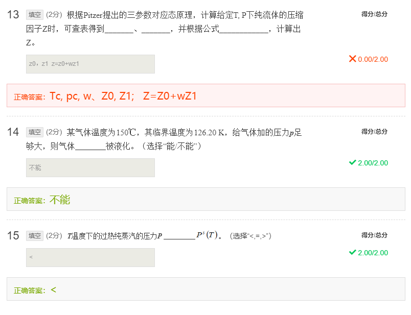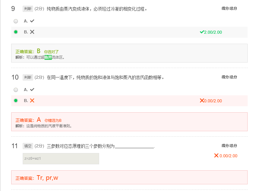 3、对比态原理是指在相同的对比态下,所有物质的性质都相同。( 错误 )