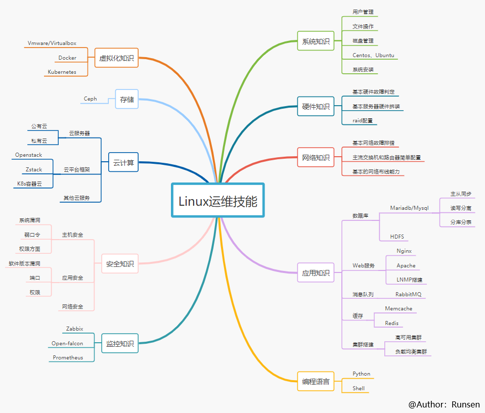 其实上面Linux知识都是基础中的基础,如果想深入linux运维,下面是我做的关于Linux运维的思维导图,作为本次GitChat的结尾。