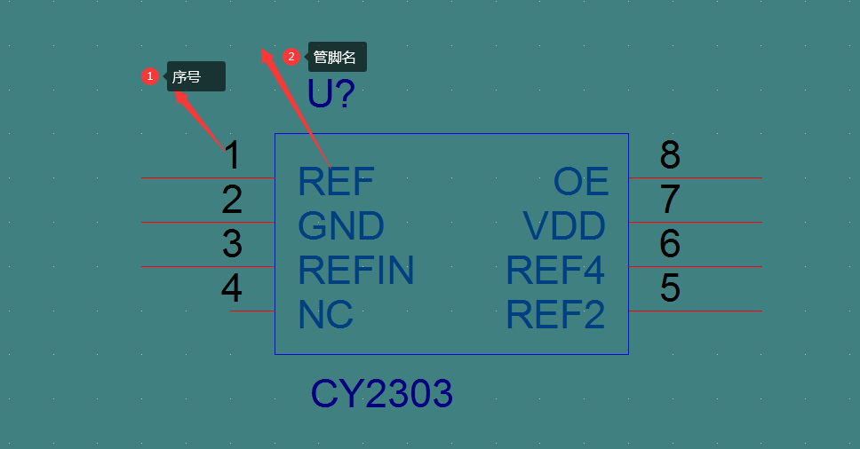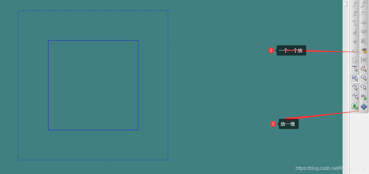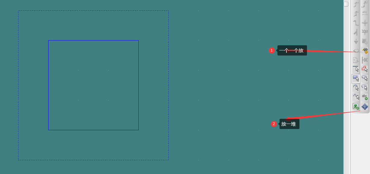 之后,就是放置管脚,可以通过两种方式,一种是一个一个放,另一种是按阵列的方式放,放一堆出来: