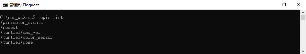 在新终端中运行该命令ros2 topic list将返回系统中当前活动的所有主题的列表: