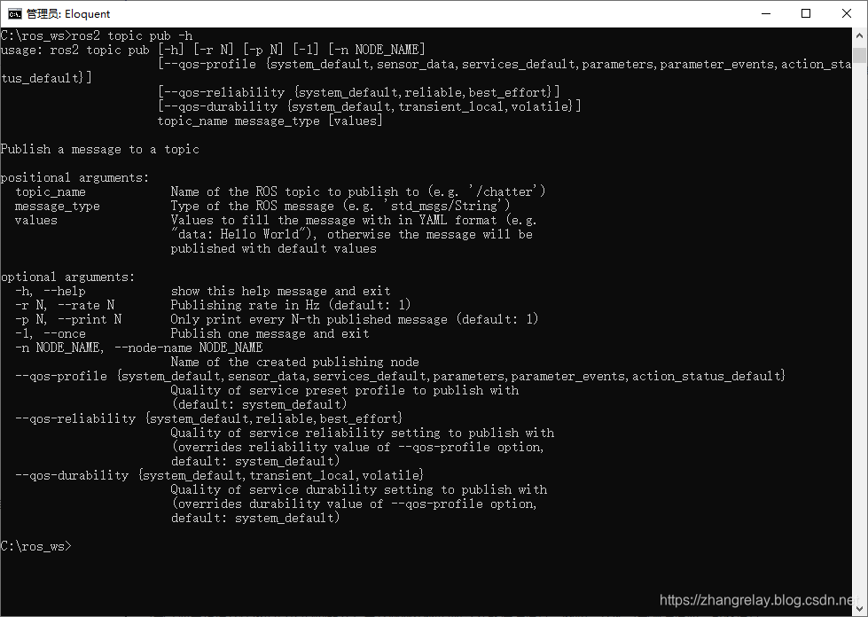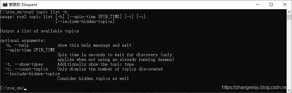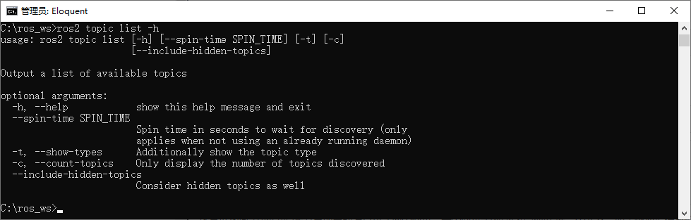 ros2 topic -h