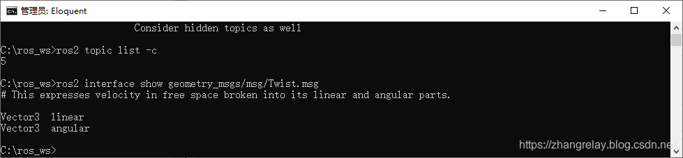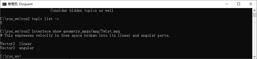 ros2 interface show geometry_msgs/msg/Twist.msg