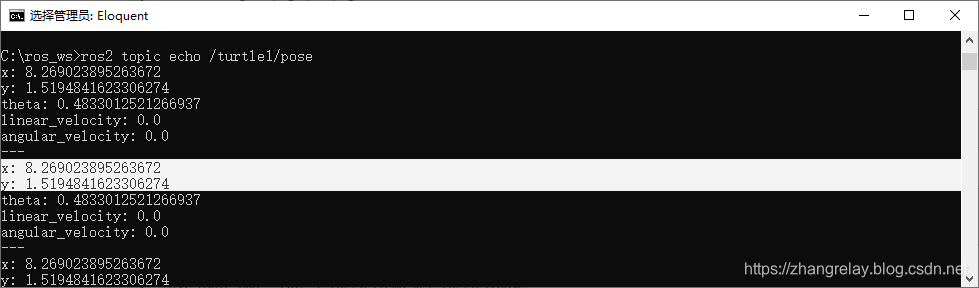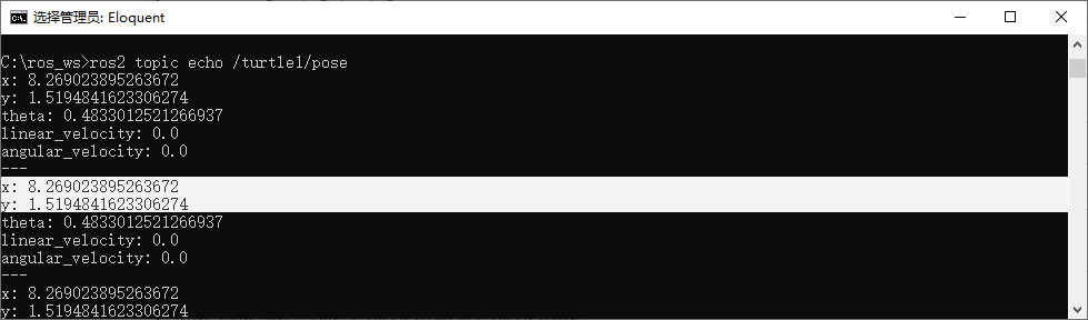 ros2 topic echo /turtle1/pose