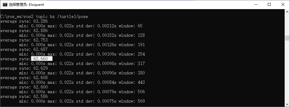 ros2 topic hz /turtle1/pose