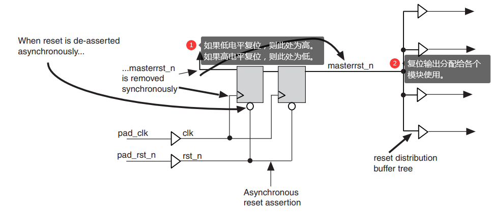 异步复位和同步复位都有着各自的优缺点,但异步复位反应快的有点让我们比较喜欢,但是由于异步复位的时刻如果不满足恢复时间,就会出问题,也就是会产生亚稳态,亚稳态是危险的,因此我们要设法避免,异步复位,同步撤离的设计方式可以解决这个问题,见之前博文:谈谈复位