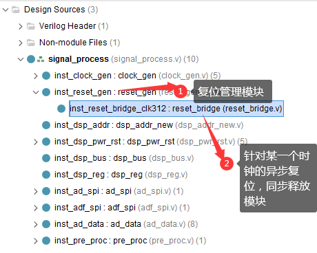 可以将异步复位,同步释放电路设计在一个模块里面,供不同时钟域内的设计使用。