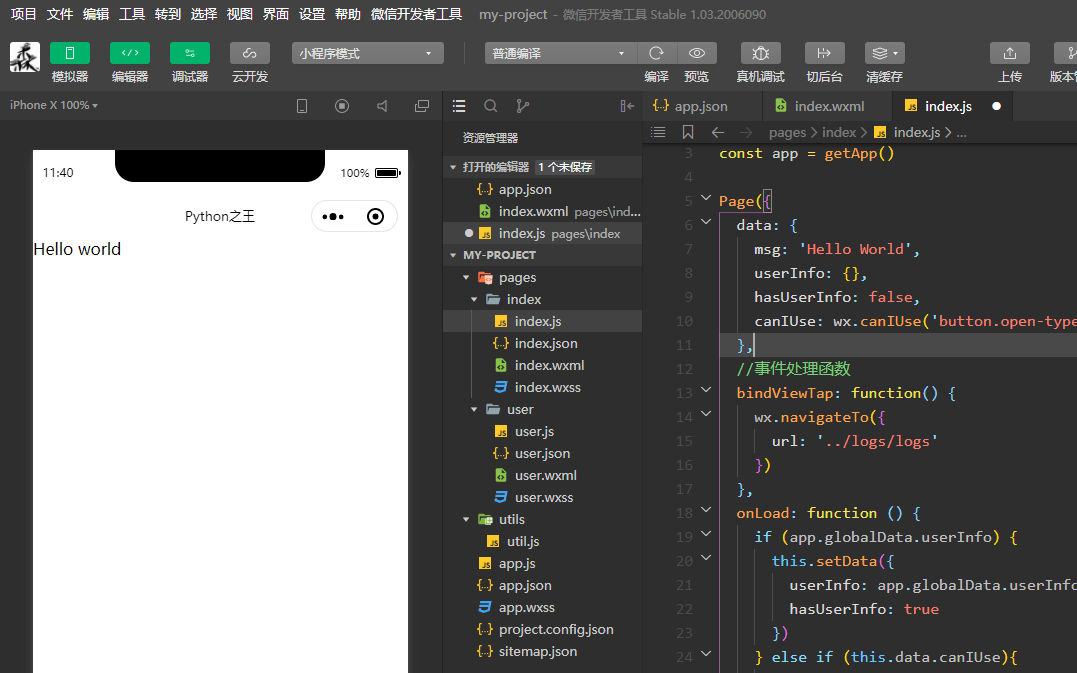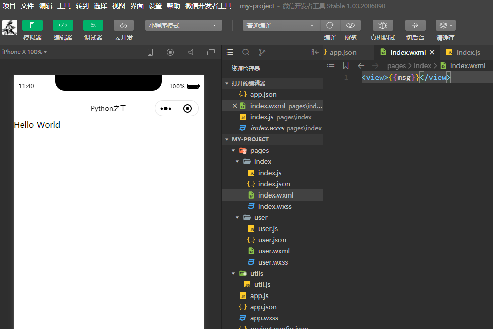 在很多时候,view其实就是span标签的意思。下面就是小程序中的Hello world