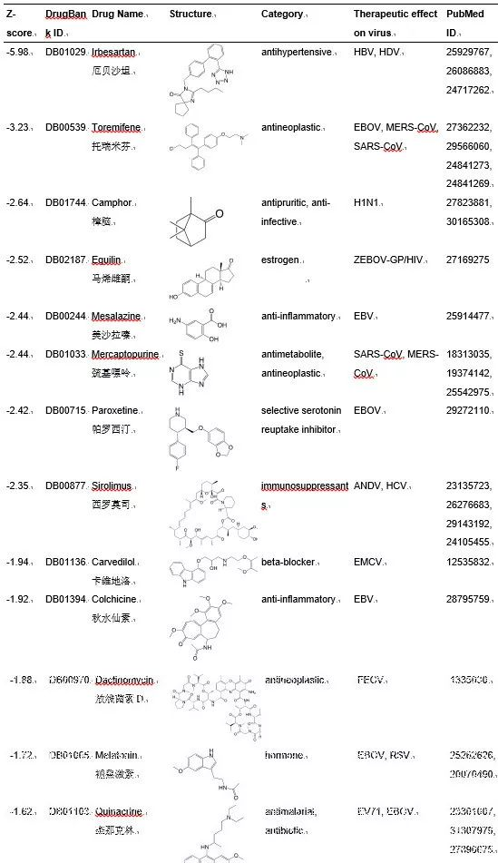 表1 作者预测的16种候选药物