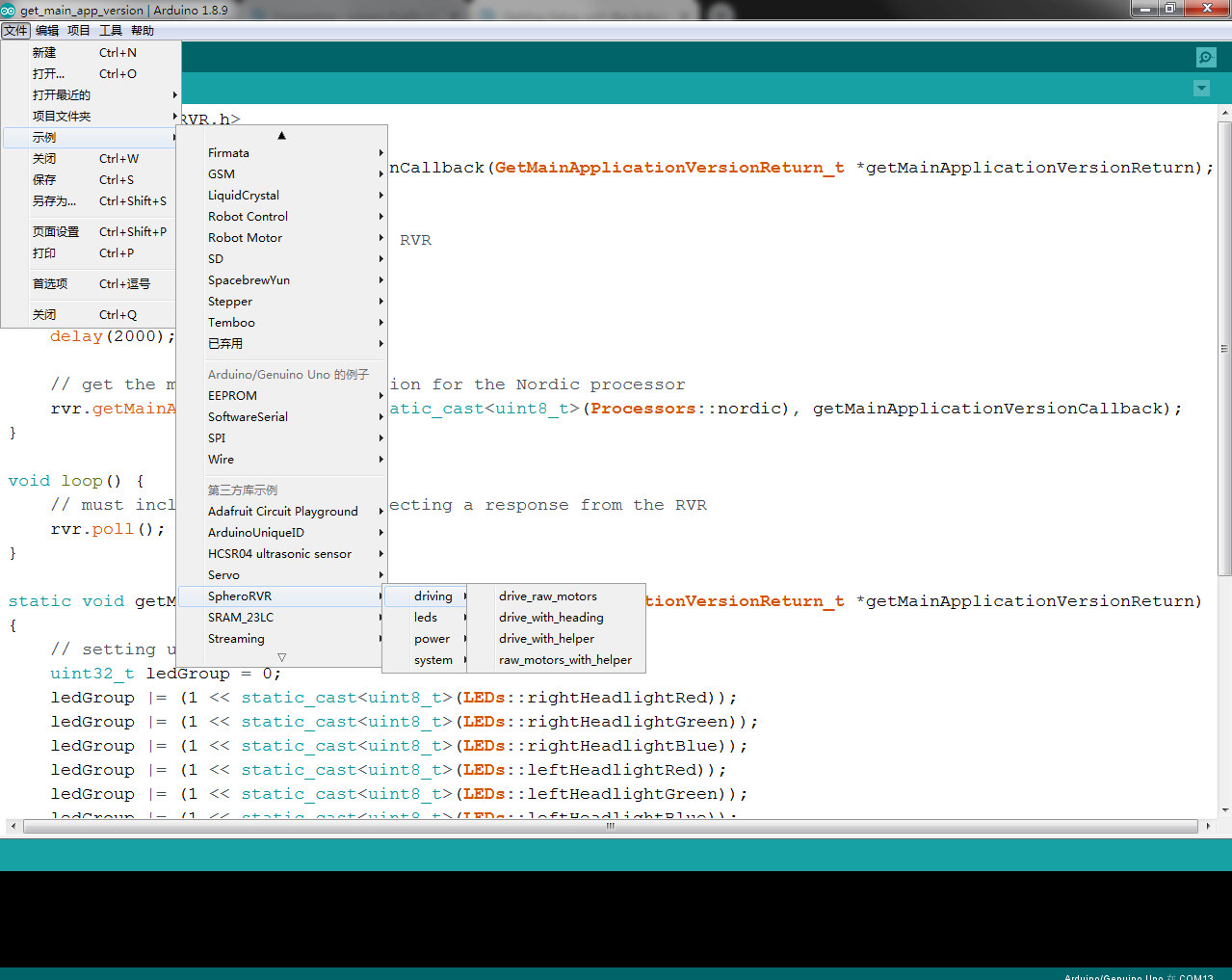 如果您不希望逐步浏览我们将在Arduino上加载的代码,则可以在Arduino IDE中打开weather_bot.ino文件(从Sphero Arduino SDK GitHub的demos/weather_bot目录中),然后跳转到将文件加载到你的Arduino。否则,让我们进行一些演练!