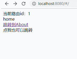 <template> <div class=""> <div>home</div> <router-link :to="{name: 'About', params: {a: 1, b: 2}}">跳转到About</router-link> <div @click="$router.push({name: 'About', params: {c: 3, d: 4}})">点我也可以跳转</div> </div>