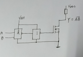 反相器的CMOS电路下面串联一个NMOS管,并用与非门控制;