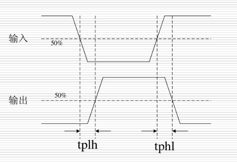 Propagation Delay(传播延时):在输入信号变化到50%Vdd到输出信号变化到50%Vdd之间的时间。