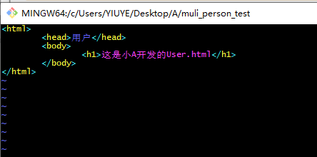 <html> <head>用户</head> <body> <h1>这是小A开发的User.html</h1> </body>