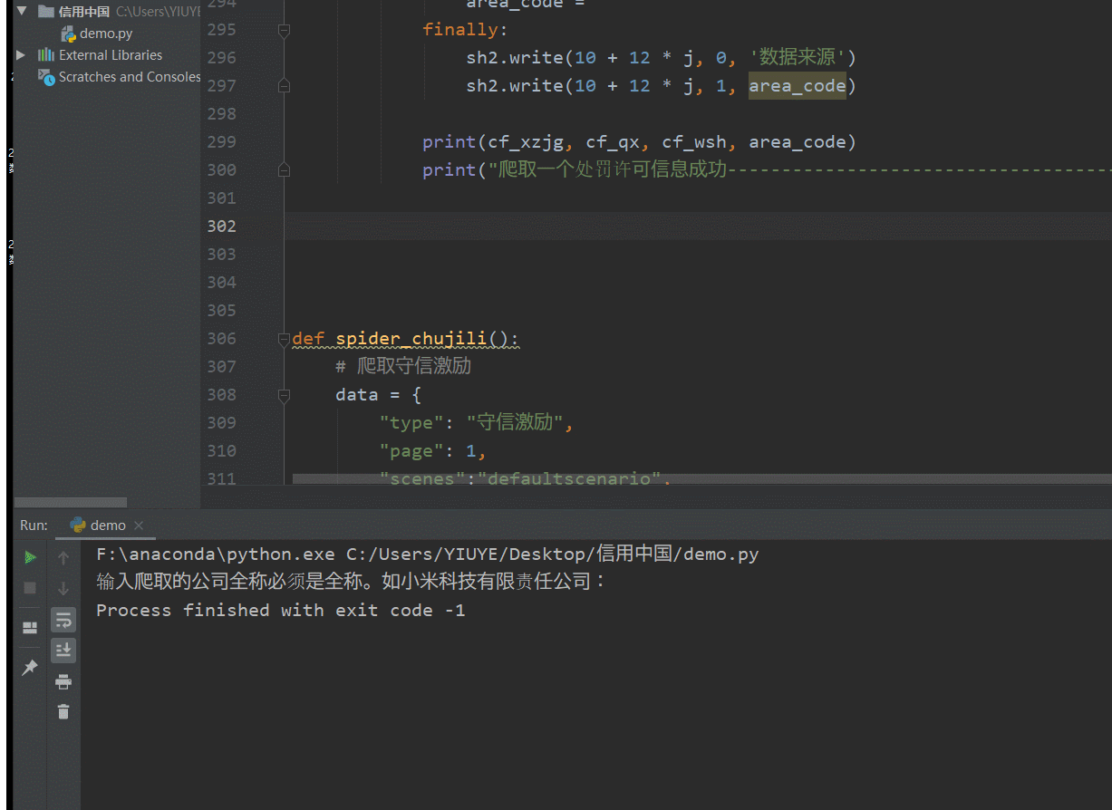 最近爬取了信用中国,输出里面的行政许可内容,行政处罚,守信激励的内容,并以excel形式显示