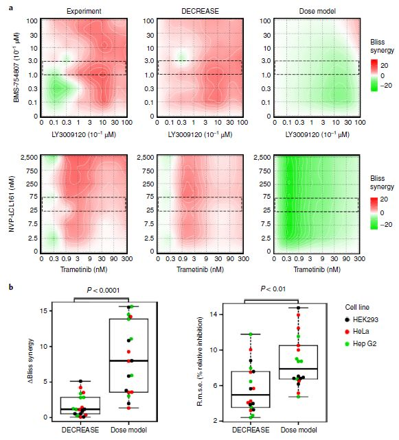 图2 DECREASE通过高通量实验数据筛选设计,准确预测药物组合效应