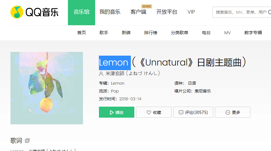 我们继续学习Python爬虫。本次爬取的对象是QQ音乐Lemon 日语歌的评论