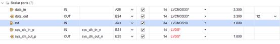 当两个banks的I/O口作为LVDS电平时,HR banks的I/O电压VCCO只能为2.5V,HP banks的I/O口电压为1.8V。两个banks支持LVDS的标准不同,HR I/O banks的I/O只能分配LVDS_25标准,HP分配为LVDS标准。