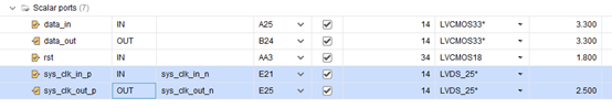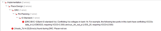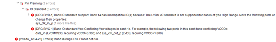 提示VCCOs矛盾,输出差分时钟sys_clk_out_p,要求VCCO=2.5V,但对输入并没有这种要求。