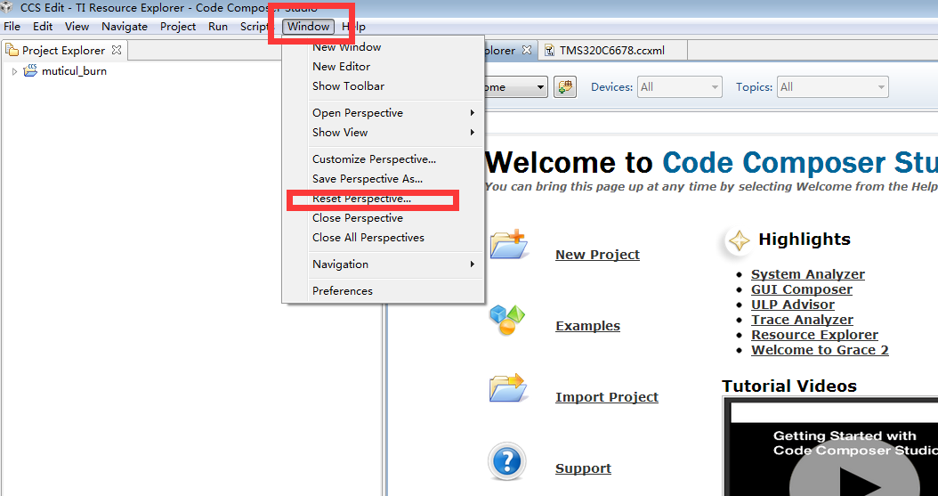 通常由于手贱的原因,关掉了ccs的某些窗口,导致后面调试DSP程序的时候非常难受,这里简单记录下如何恢复到默认的界面。