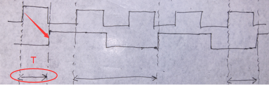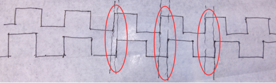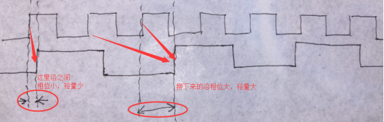 (3)两个时钟相邻的几次发送沿和接收沿的相位差都很小的情况,如下图所: