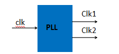 假如时钟源的时钟频率为clk,经过PLL后,产生一个时钟clk1和一个时钟clk2: