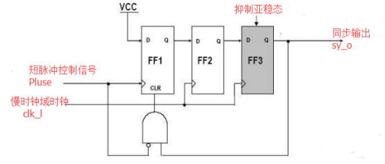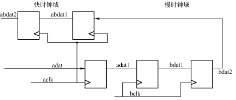 ·在慢到快的时钟域中,加上触发器链基本上就可以了,主要是抑制亚稳态的传播。
