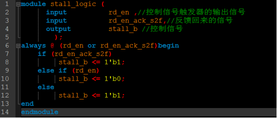 在上面的握手方案中,我们通过反馈信号进行控制信号的延时来让慢时钟域充分采样得到控制信号,本质上是也是对控制信号的延时。这个延时的具体实现,需要对控制信号的产生逻辑进行处理,来满足延时的要求,如下所示: