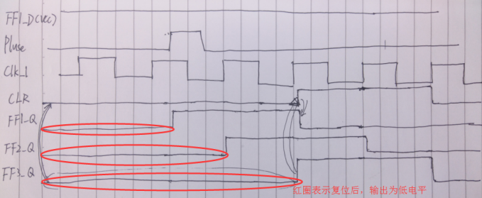 要注意,其中间不能有任何组合逻辑,电路图与对于的时序关系如下所示(代码就不写了,电路简单):
