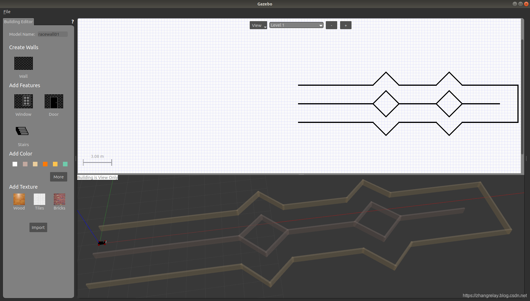 目前比赛规则已经渐渐明朗,参考官方,制作标准比赛仿真环境,学习阿克曼小车控制,ROS基础和相关智能车算法(后续会补充)。开启Building Editor,依据下图绘制环境: