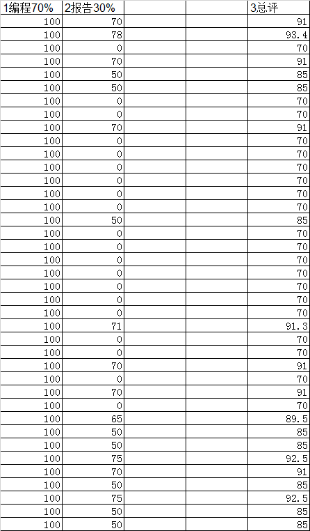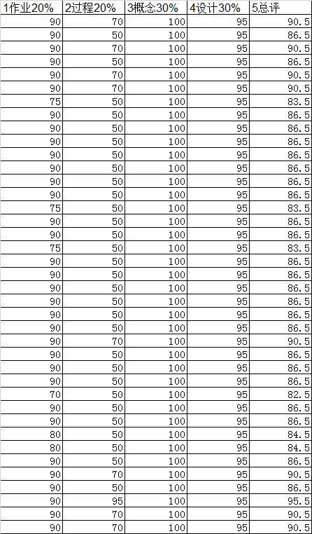这门课程的结论和之前课程成绩结论保持一致,期间有9位学生到办公室找我,希望分数能高一些,