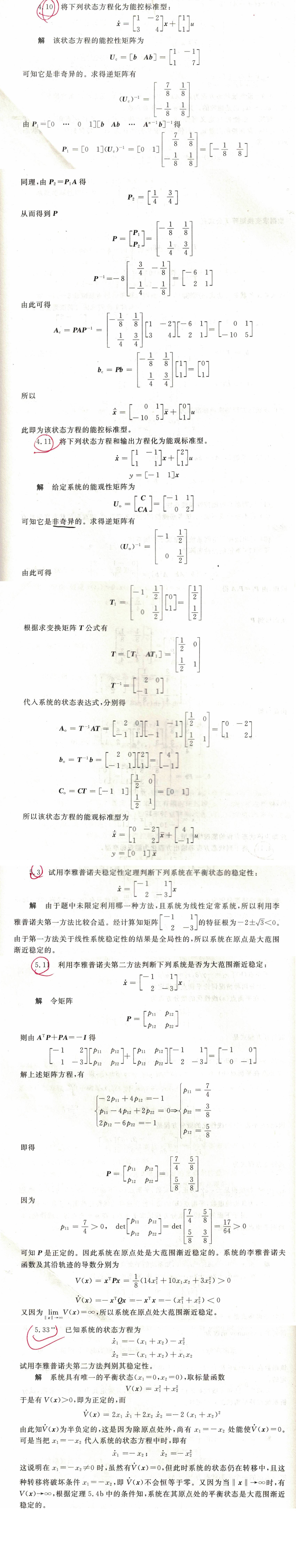 这只是提示,非参考答案。部分同学,写出答案非常僵化,未理解和掌握现代控制理论方法,不会用此方法分析和解决问题,只会做些题目。