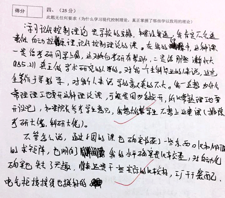 从期末试卷批阅看,成绩在预料之中,并不理想,部分学生并未真正理解现代控制理论。
