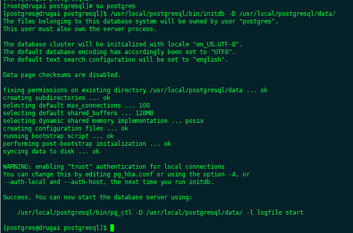 /usr/local/postgresql/bin/initdb -D /usr/local/postgresql/data/