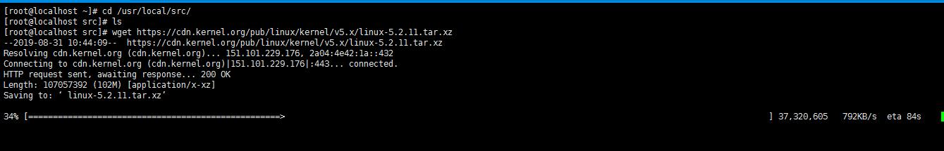 1、下载最新稳定版本的内核源码包到 /usr/local/src ,并解压到当前目录