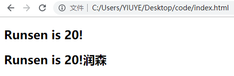 <script> var app = new Vue({ el:"#app", data:{ messsage:"Runsen is 20" } })