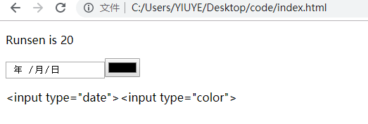 <script> var app = new Vue({ el:"#app", data:{ message:"Runsen is 20", html: '<input type="date"><input type="color">' } })