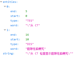 - 医疗专业中标注比如:比如检测手段“头 ct”,“腔隙性脑梗死”是疾病,他们的关系是:检测手段证明了疾病