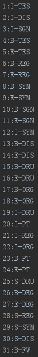 例如医疗需要识别的命名实体的类型有疾病、疾病诊断分类、症状、检查、治疗在这五类以及疾病和症状的修饰信息。;对应英文分别是(Disease)(Disease Type) (Symptom) (Test) (Treatment)