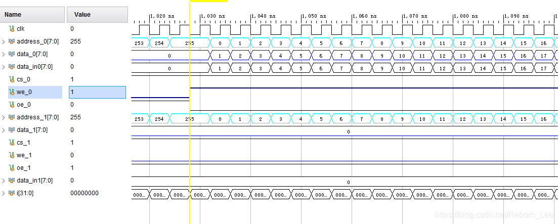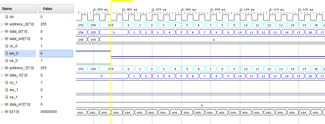 如果对两套端口同时进行写操作,可见地址0优先,而读就不存在这种情况。(可不必考虑这句话!)