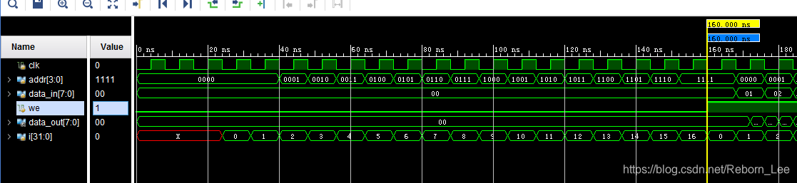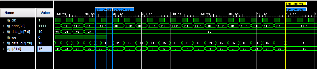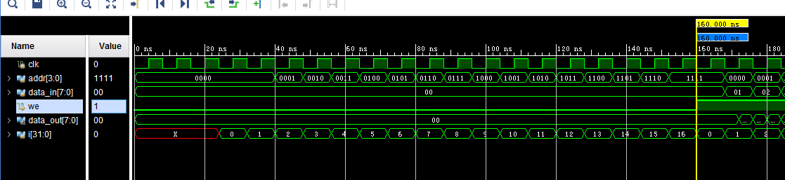 2. 用verilog实现一个深度为16,位宽8bit的单端口SRAM。搭建一个仿真环境,完成初始化,读取,写入的操作。