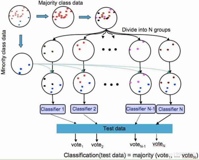 核心思想:使用之前已形成的集成分类器来为下一次训练选择多类样本,然后再进行欠抽样。