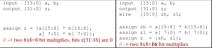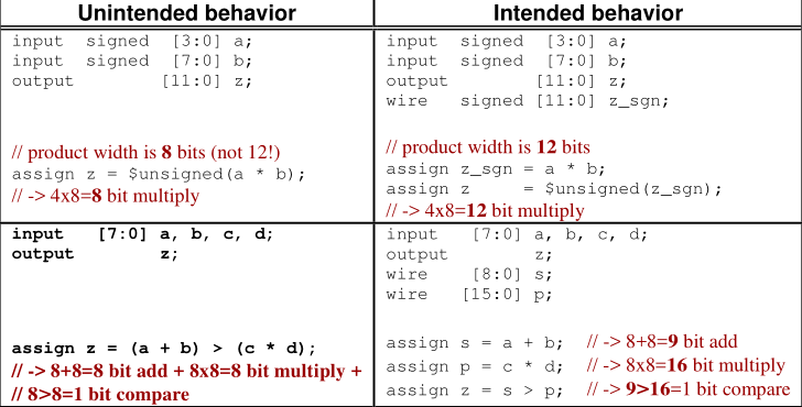 • Rule: Avoid using self-determined expressions. Use intermediate signals and additional assignments to make widths of arithmetic expressions unambiguous (context-determined expressions).