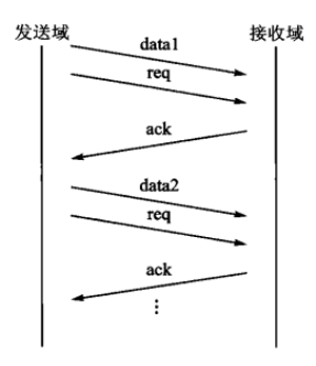 所谓握手,即通信双方使用了专用控制信号进行状态指示,这个控制信号既有发送域给接受域的也有接收域给控制域的,有别于单向控制信号方式。